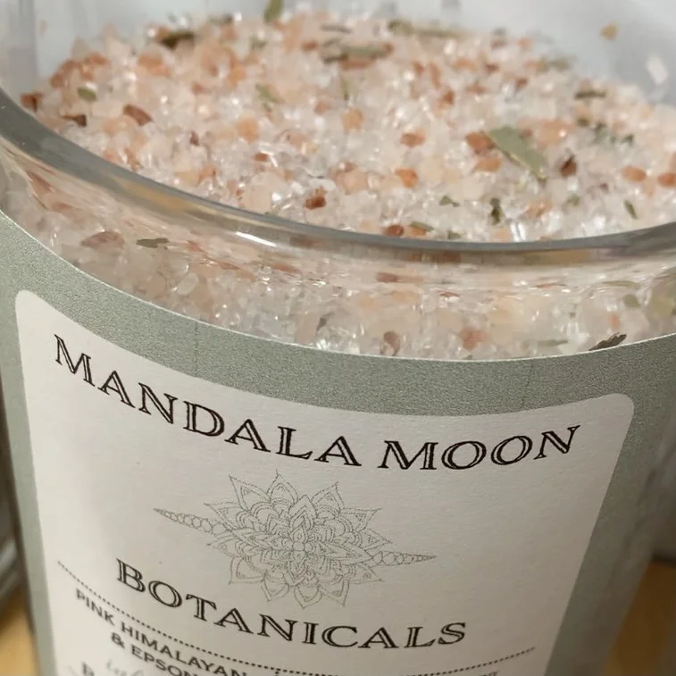 All of our bath salts include a special blending of Epsom salt and Pink Himalayan salt combined with quality essential oils, flowers and herbs. Each of one our unique herbal infused bath salts has been created to pair specifically with one of our Mandala Moon Candle Co. candles. Although you are free to mix & match as you please, we are excited that each one of the bath salts has a complimentary candle so that all of the aromas and goodness of both candle and bath salts go hand in hand for the ultimate sensory experience.