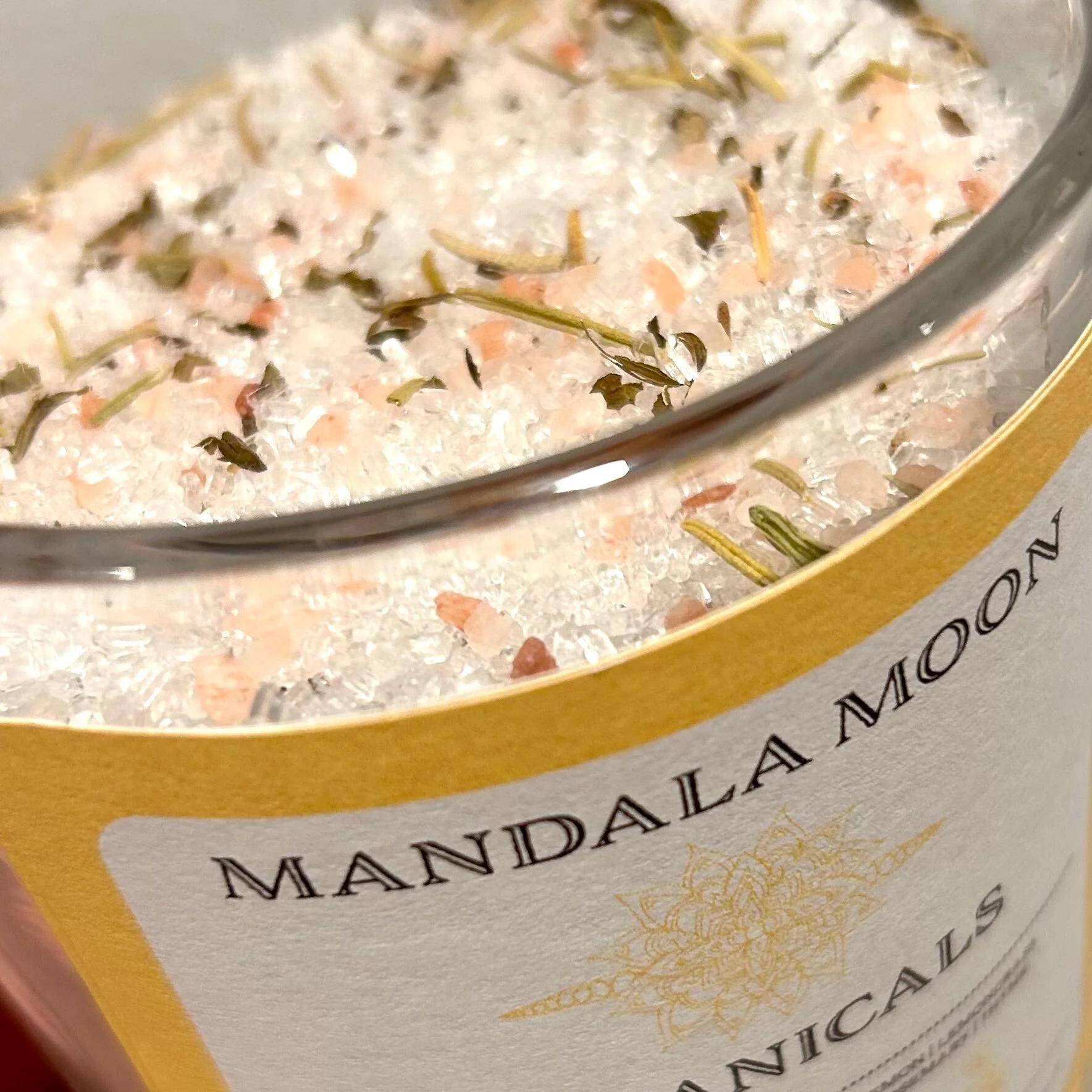 All of our bath salts include a special blending of Epsom salt and Pink Himalayan salt combined with quality essential oils, flowers and herbs. Each of one our unique herbal infused bath salts has been created to pair specifically with one of our Mandala Moon Candle Co. candles. Although you are free to mix & match as you please, we are excited that each one of the bath salts has a complimentary candle so that all of the aromas and goodness of both candle and bath salts go hand in hand for the ultimate sensory experience.